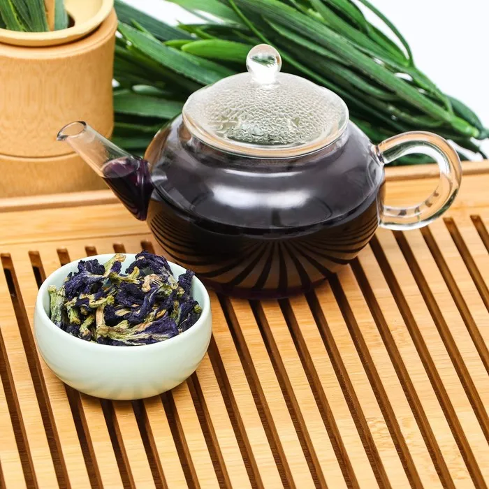 В основе чая - сушеные цветки клитории тройчатой, поэтому он имеет необычный цвет и оригинальный приятный сладковатый вкус с насыщенными цветочными нотками. Чай Чанг Шу ускоряет процессы жиросжигания в организме, его часто используют как средство для похудения.