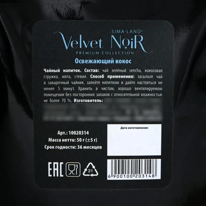 Чай травяной «Освежающий кокос» premium: кокосовая стружка, мята, стевия, 50 г. — Характеристики