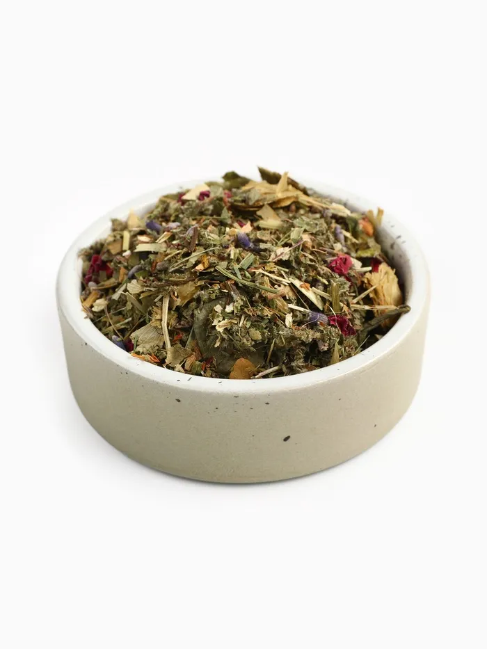 Состав: ежевика (листья), боярышник (цветки), пустырник (трава), зверобой (трава), мята (листья), душица (трава), лаванда (цветки), лепестки розы эфиромасличной, хмель.