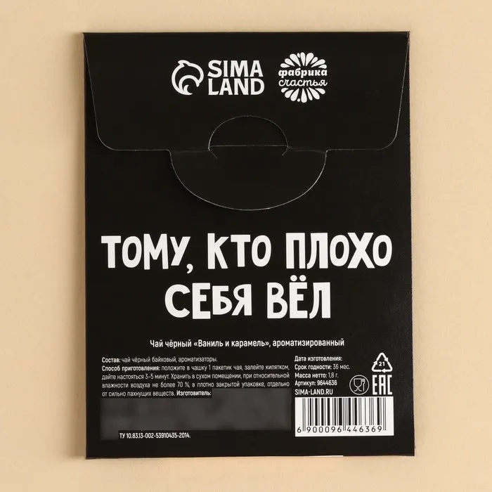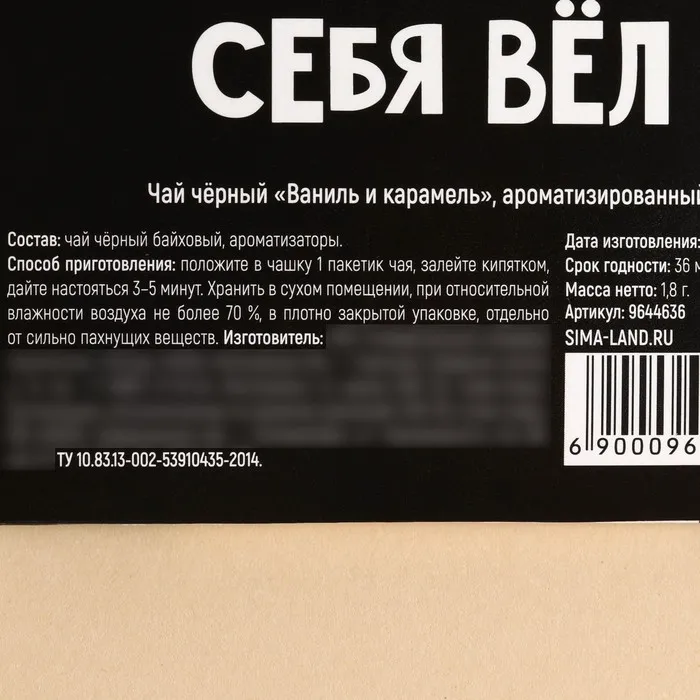 Чай в пакетике «Подарок», вкус: ваниль и карамель, 1 шт. х 1,8 г. — Характеристики