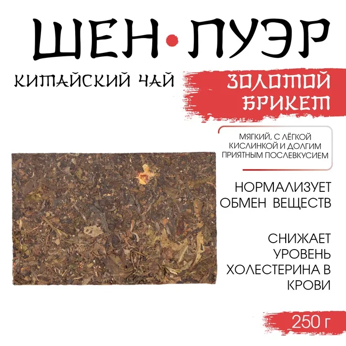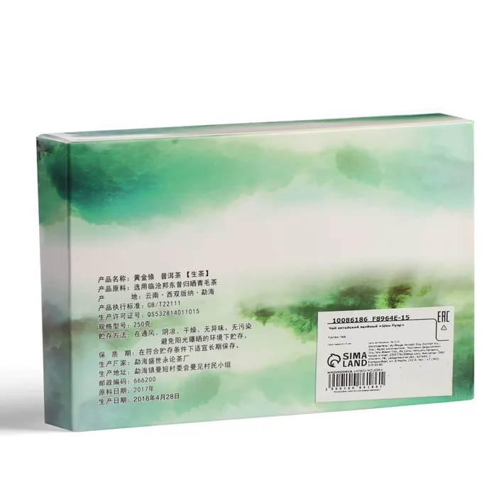 Китайский зелёный чай Шен Пуэр Золотой Брикет был выращен в уезде Мэнхай в 2018 году.