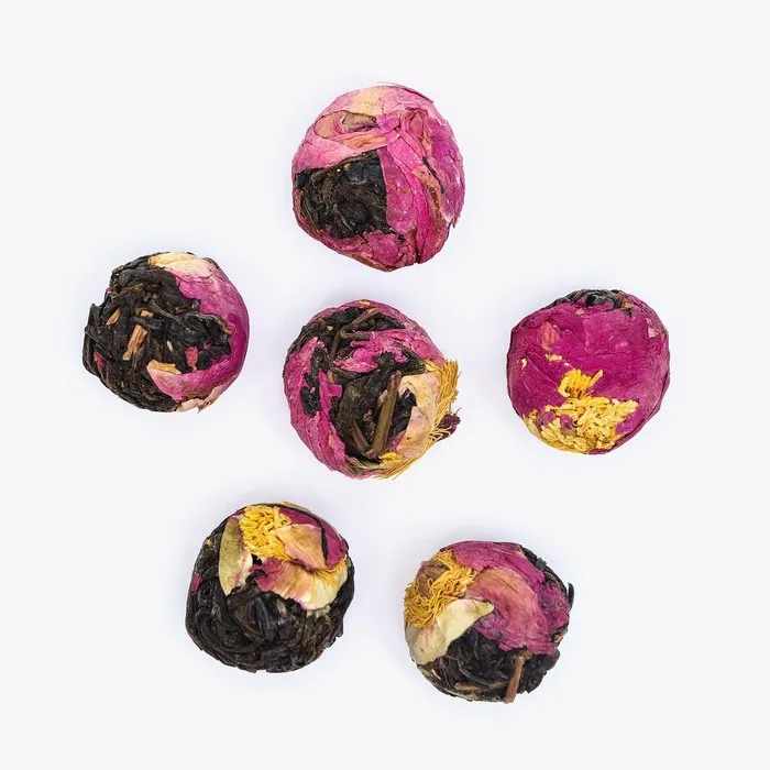 Связанный чай создан для тех, кто любит наслаждаться ароматом. Сухой шарик источает густой цветочный аромат с кислинкой яблока. Настой сохраняет в себе лишь отголосок этого запаха на фоне ароматов пиона. При заваривании связанные листья чая раскрываются вместе с бутоном, дополняя чаепитие созерцанием прекрасных цветов. Очень красивое зрелище, которым лучше всего любоваться, заварив этот чай в жаропрочном стеклянном чайнике. Настой светлый, желтоватый, с едва различимым розовым оттенком. Вкус зелёного чая в нём сочетается с нежным, словно тающим на языке пионом, изящно дополняющими букет.