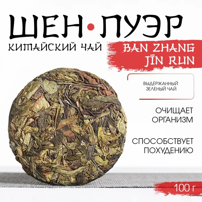 Чай зелёный китайский выдержанный «Шен Пуэр. Bаn zhаng jīn run», Юньнань, 2020 г., блин, 100 г