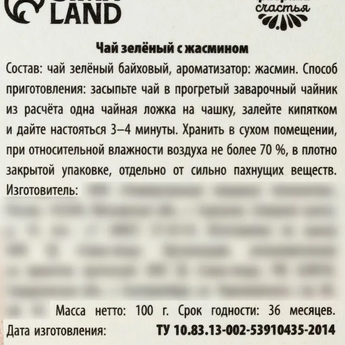 Чай зелёный «Самой нежной», в подарочном мешочке, вкус: жасмин, 100 г. — Характеристики