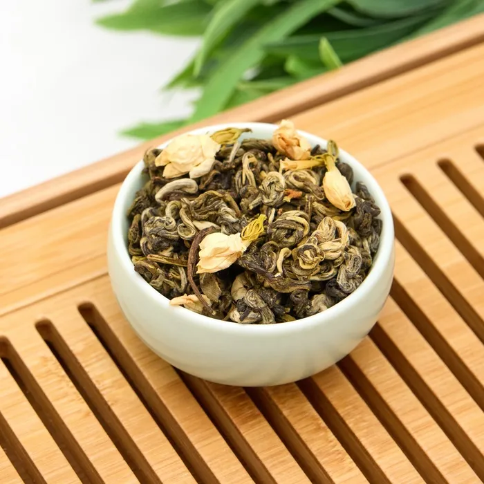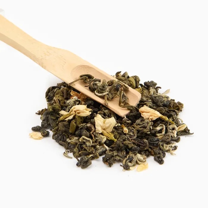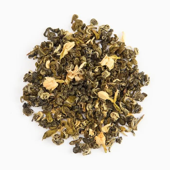 Китайский зеленый жасминовый чай "Жасминовая ракушка" – это уникальный сорт чая, производимый из отборных чайных листьев, ароматизированных свежими цветами жасмина. Листья проходят тщательный процесс сбора и обработки, чтобы сохранить их свежесть и аромат. Жасмин, добавляемый в чай, собирается на рассвете, когда его аромат наиболее интенсивен.