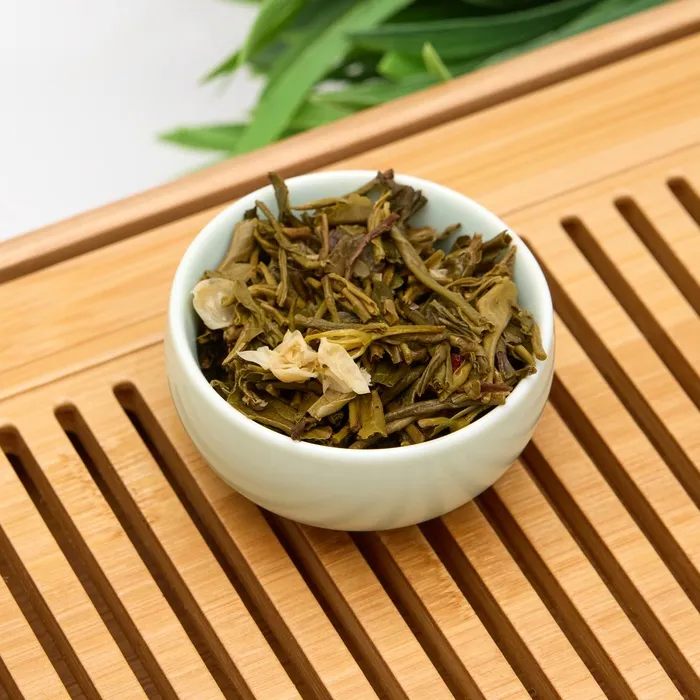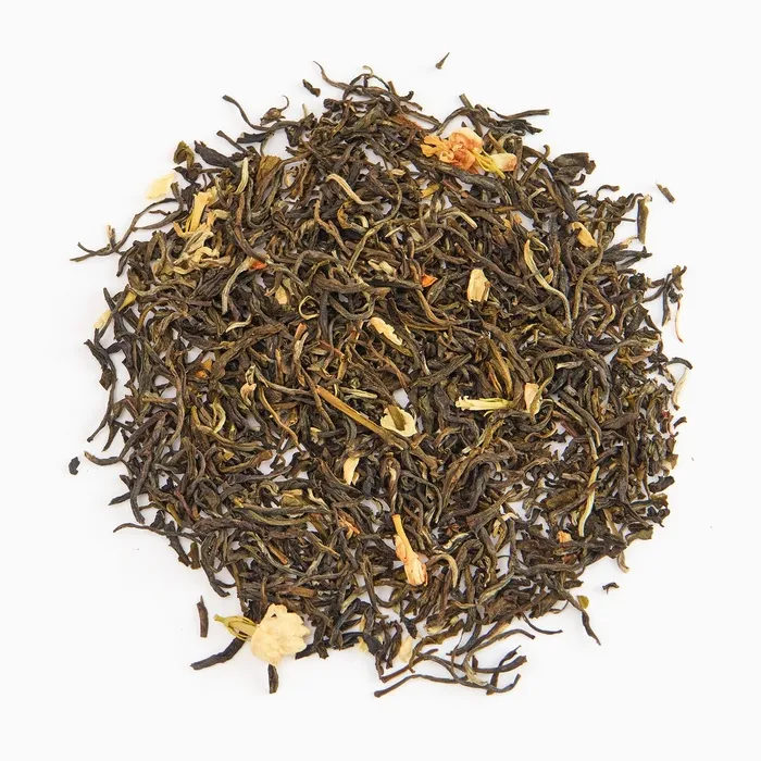 Китайский зеленый жасминовый чай "Жасминовый снегопад" – это уникальный сорт чая, состоящий только из двух верхних листочков, которые собирают ранней весной после сезона Хлебных дождей. Название чая переводится как «Кружащийся жасминовый снег», что отражает его характер при заваривании: чайные листья кружат и опускаются на дно, словно хлопья первого снега.