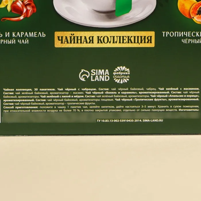 Состав: чай зелёный байховый, ароматизаторы пищевые.