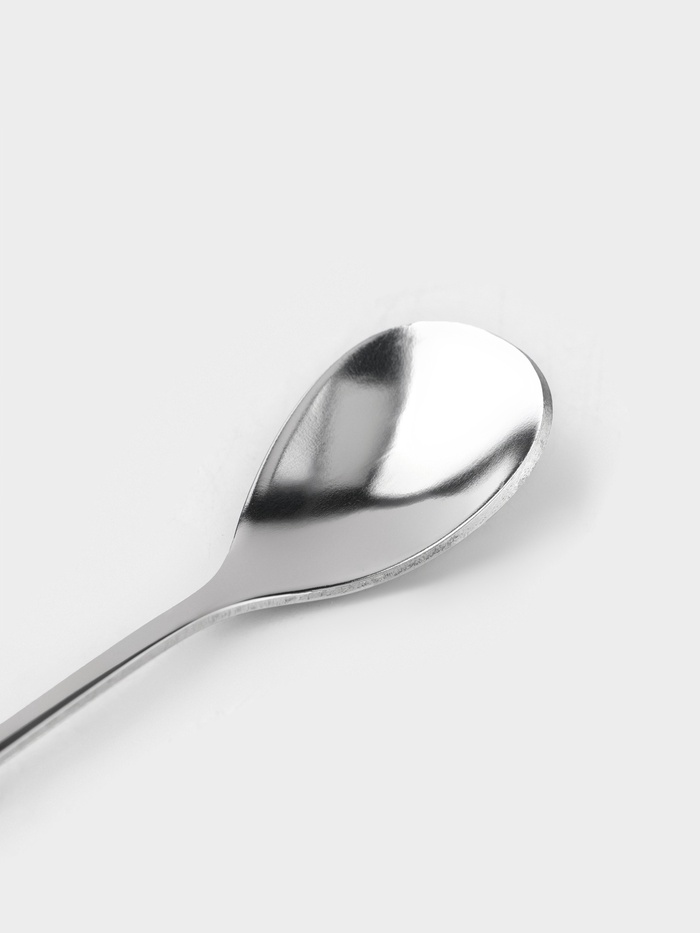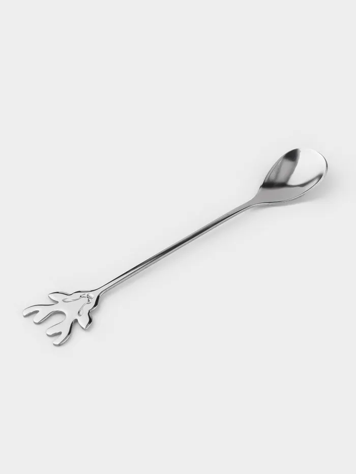 - Нержавеющая сталь: материал устойчив к коррозии, сохраняет блеск и не вступает в реакцию с напитками. Ложка не темнеет и не теряет внешнего вида после многократного использования.