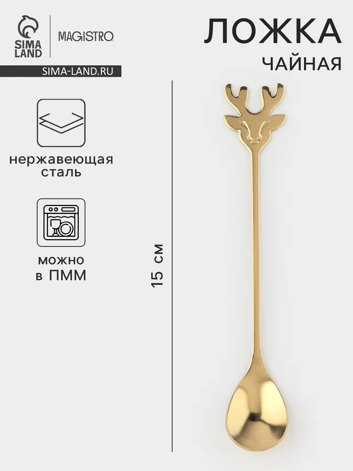 Чайная ложка Magistro «Хьёрт», длина 15 см, нержавеющая сталь, золотистая — Характеристики
