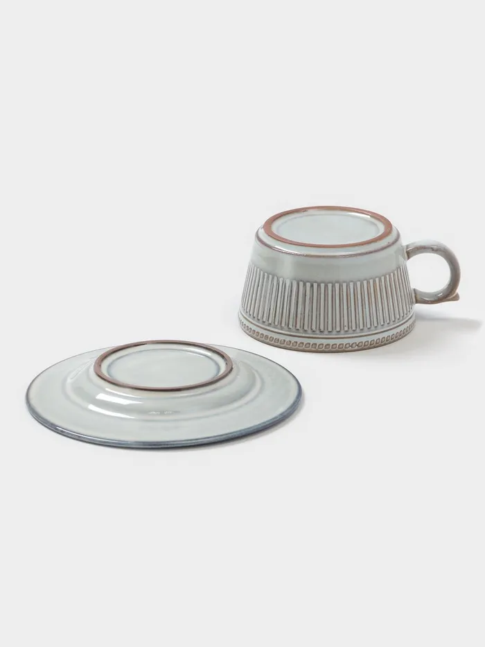 Чашка объёмом 250 мл идеально подходит для вашего любимого напитка — будь то чаи, кофе или ароматные настои. Приглушённый голубой цвет добавит спокойствия и умиротворения, а рельефная текстура придаёт особый шарм, напоминая о вехах винтажного стиля.