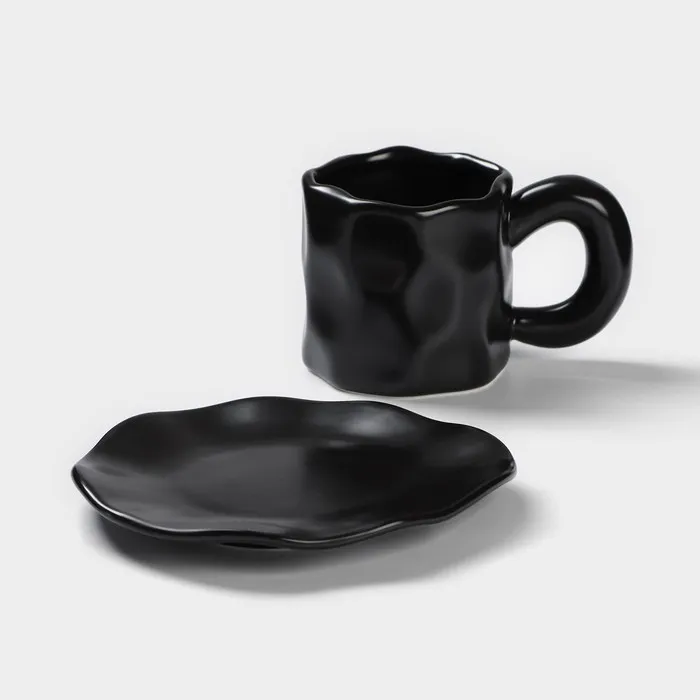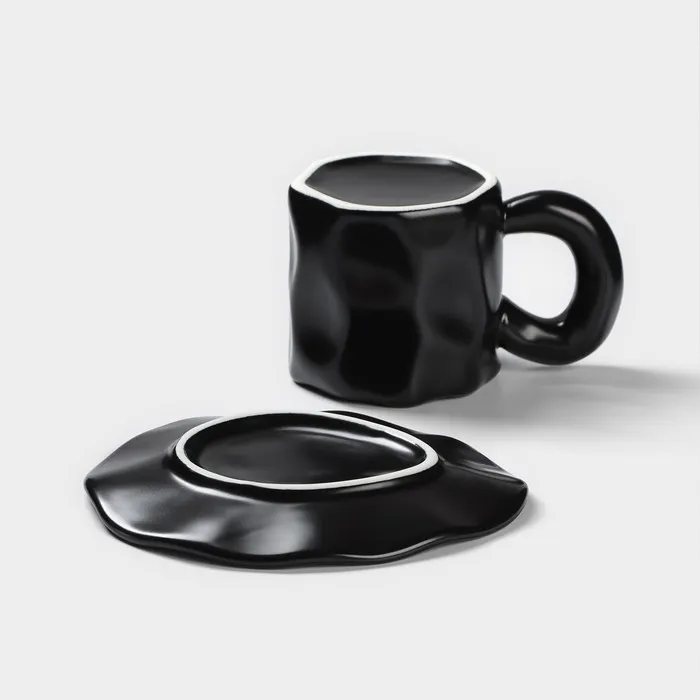 Чайная пара «Базальт», 2 предмета: кружка 200 мл, блюдце d=14.8 см, керамика, чёрная — Характеристики