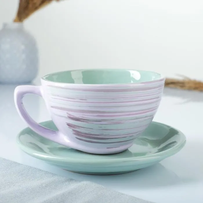 Чайная пара Борисовская керамика «Лаванда», 250 мл, чашка 11×6,5 см, блюдце d=15 см, сиреневая — Характеристики