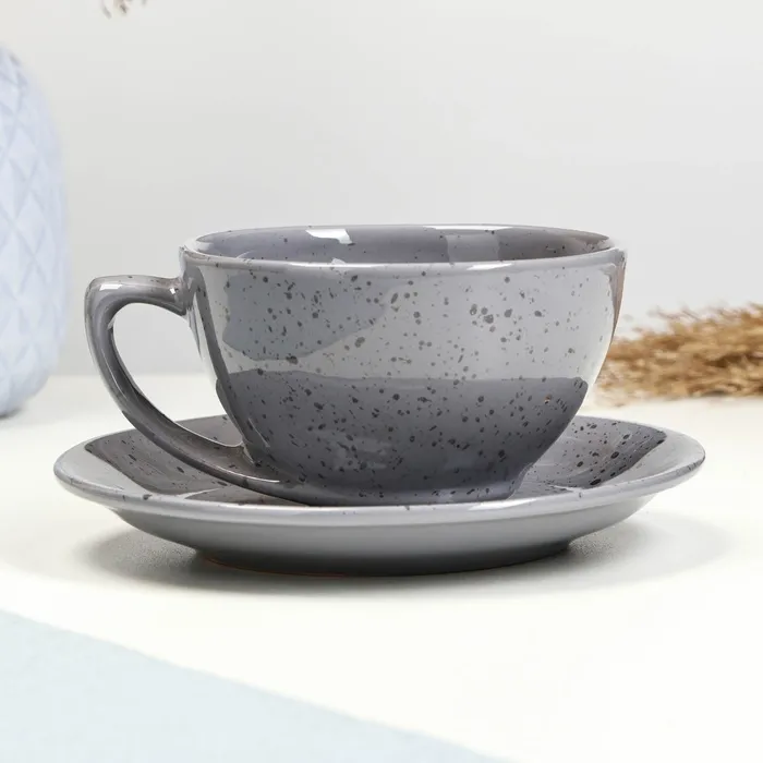 Чайная пара Борисовская керамика «Туман», чашка 250 мл, 11×6,5 см, блюдце d=15 см, серая — Характеристики