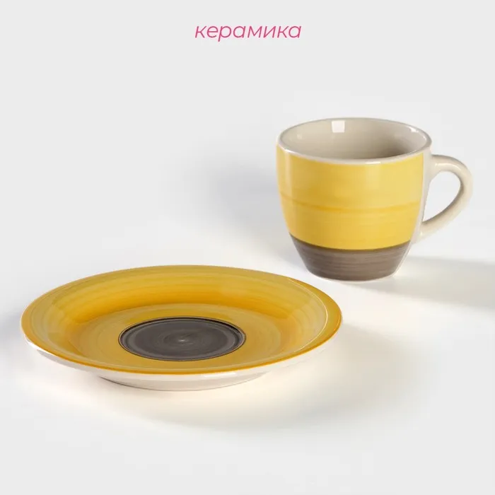 Чайная пара Доляна «Бутон», чашка 200 мл, блюдце d=14.5 см, керамика, жёлтая — Характеристики