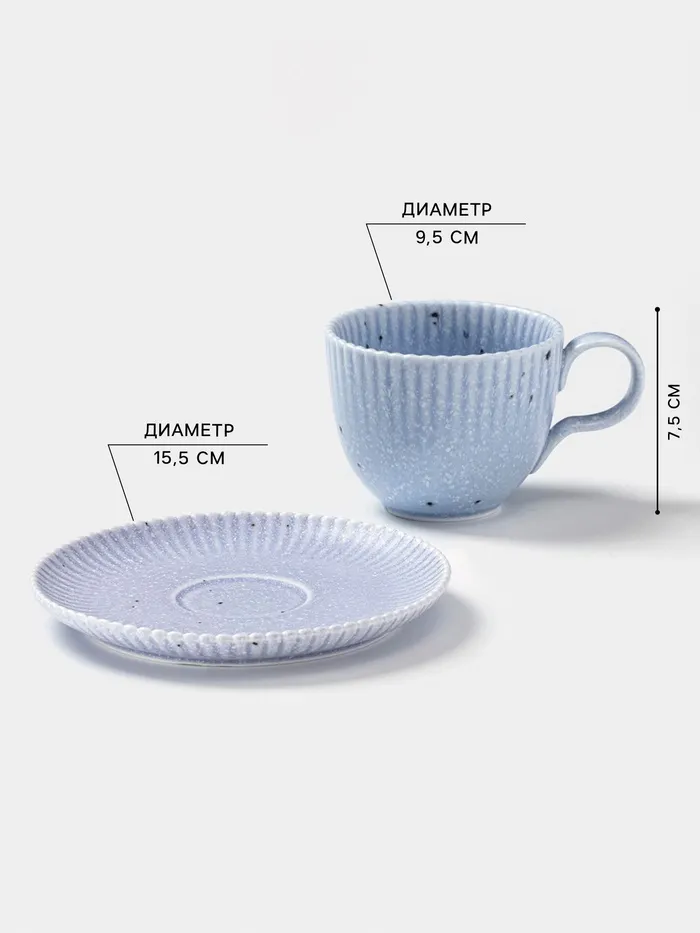 Рельефная текстура кружки и блюдца делает каждое чаепитие по-настоящему особенным и придаёт изделию индивидуальность.