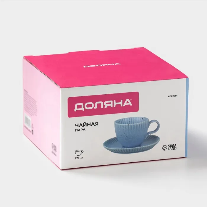 Чайная пара Доляна «Коралл», 275 мл, фарфор, голубая — Характеристики