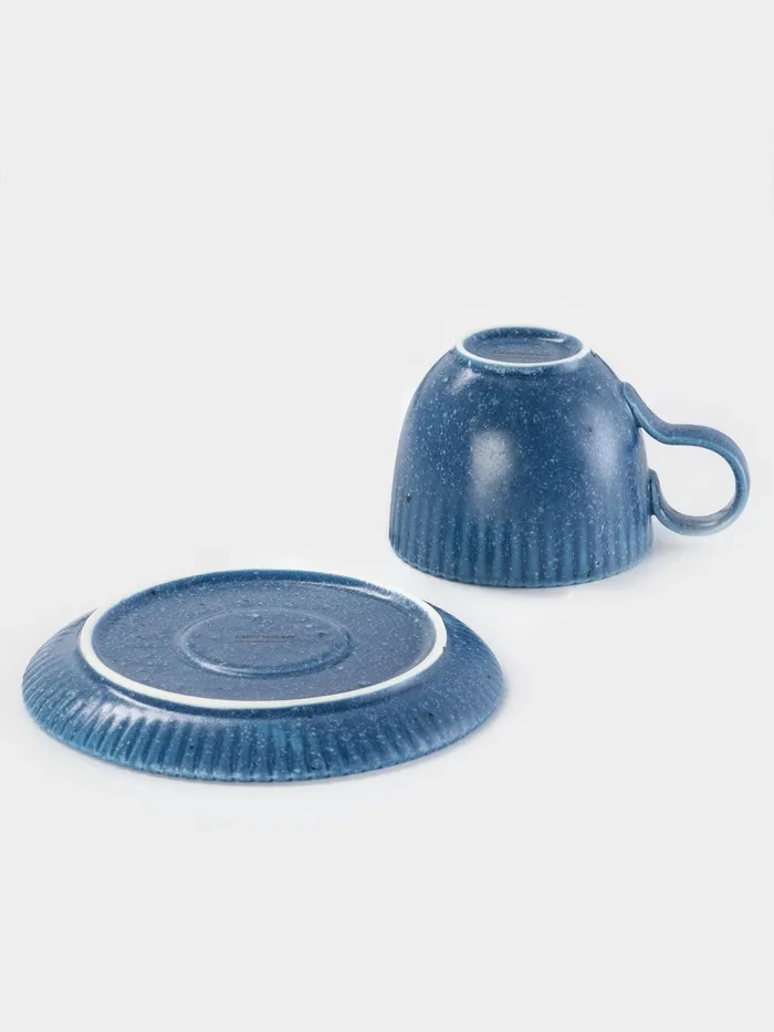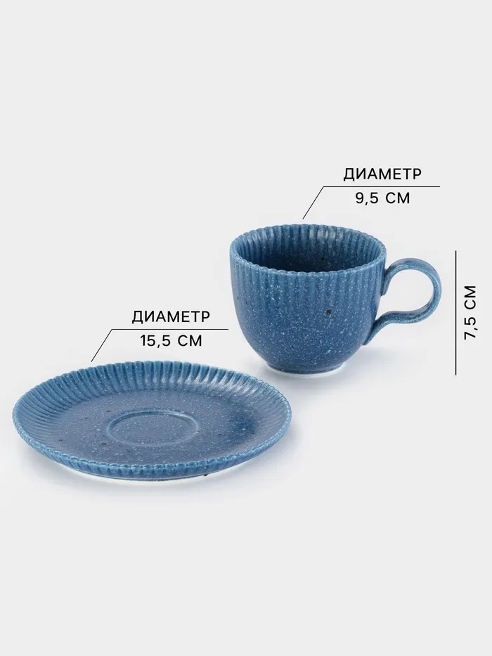 - Элегантный дизайн: насыщенный синий цвет и стильная форма кружки и блюдца добавляют изысканности вашему столу.