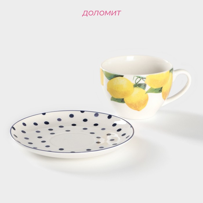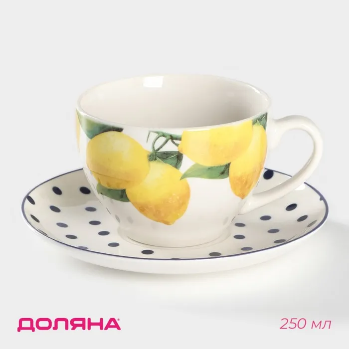 Чайная пара Доляна «Лимон», 2 предмета: чашка 250 мл, блюдце d=15 см — Характеристики