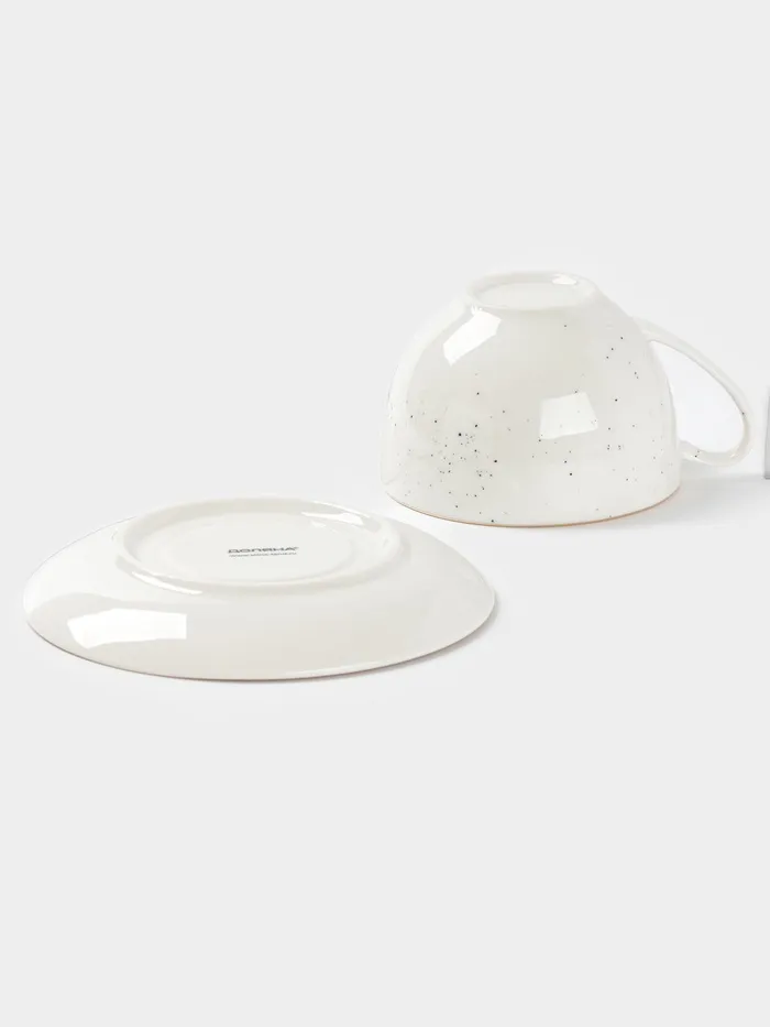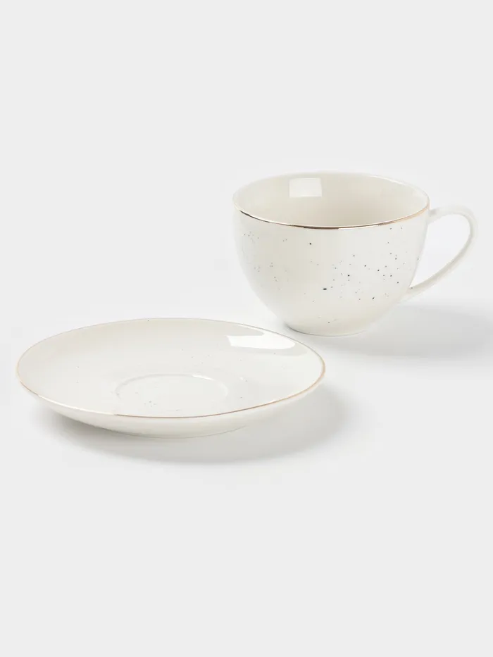 Чайная пара Доляна «Млечный путь», 2 предмета: чашка 220 мл, блюдце d=13.5 см, фарфор, белая в крапинку — Характеристики