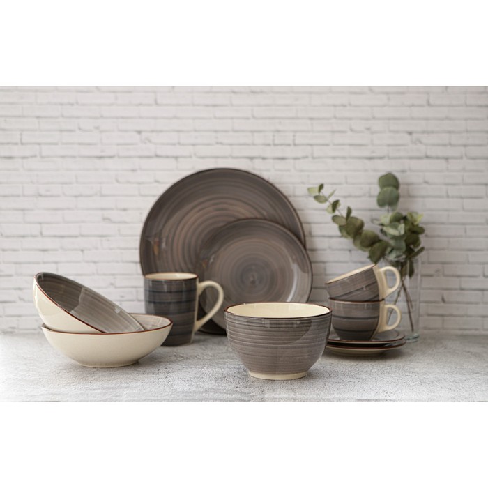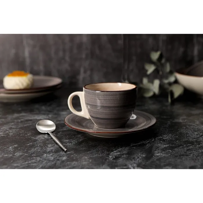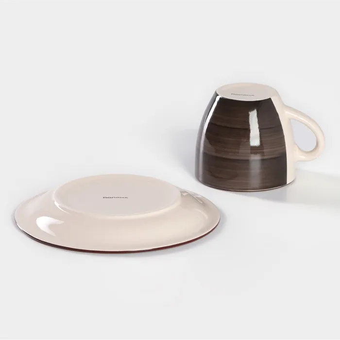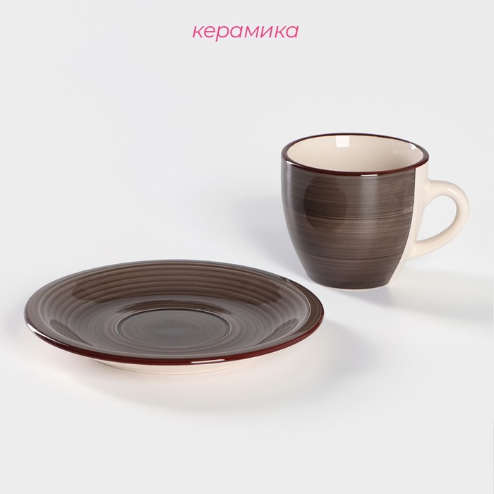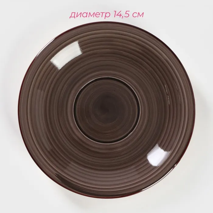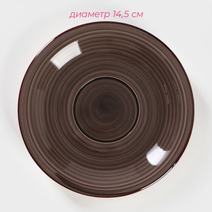 Чайная пара Доляна «Морской мир», 2 предмета: чашка 200 мл, блюдце d=14.5 см, керамика, коричневая — Характеристики