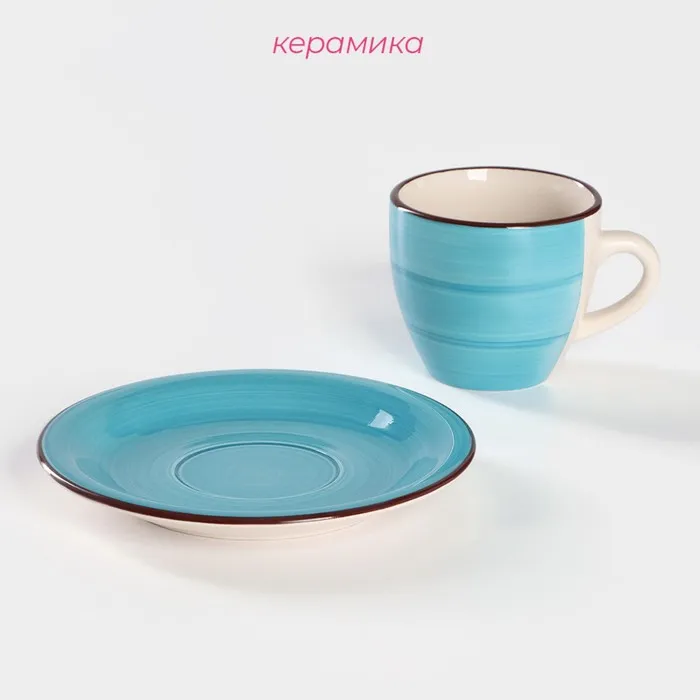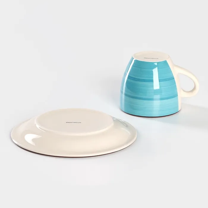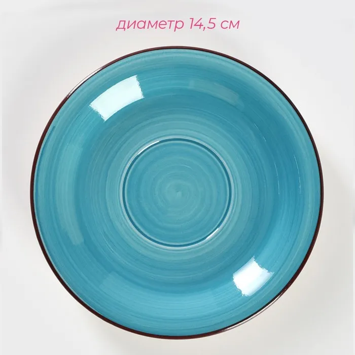 Чайная пара Доляна «Морской мир», чашка 200 мл, блюдце d=14.5 см, керамика, голубая — Характеристики