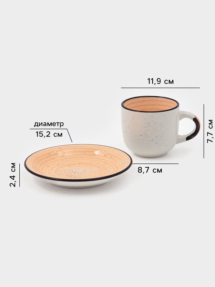 Чайная пара Доляна Nature, 2 предмета: чашка 260 мл, блюдце d=15 см, керамика, оранжевая — Характеристики