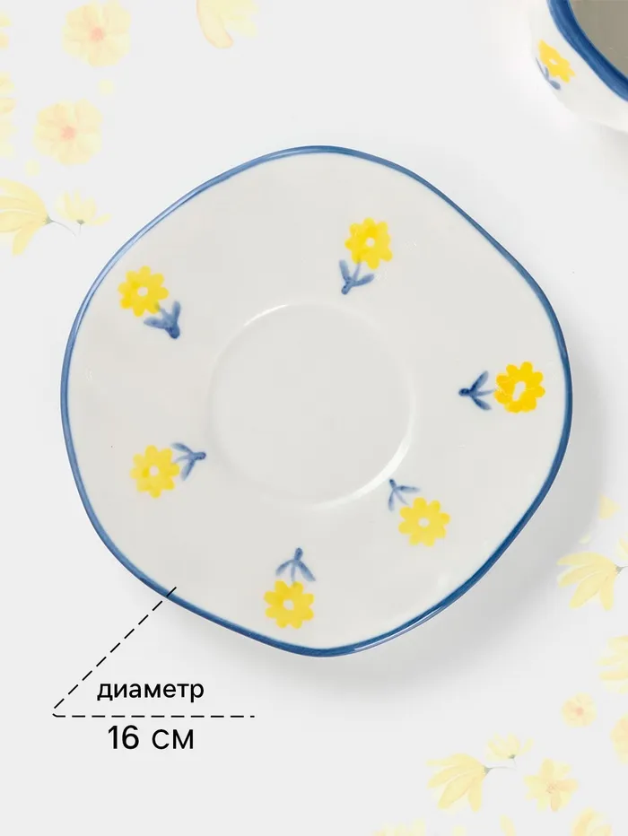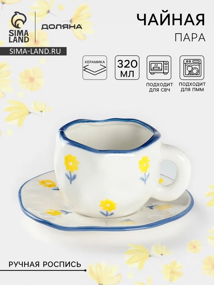 Чайная пара Доляна «Одуванчик», чашка 320 мл, блюдце d=16 см, ручная роспись, керамика, белая — Характеристики