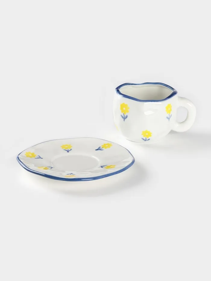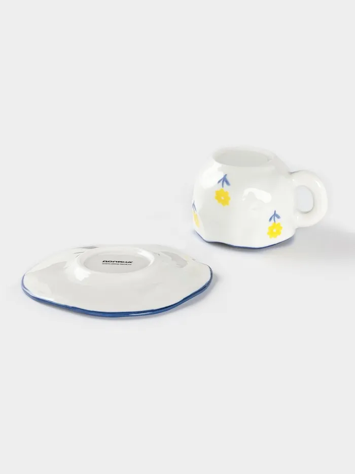 Откройте для себя истинное наслаждение чаепитием с этой уютной чайной парой, которая привнесёт в ваши будни нотку изящества и природной красоты. Каждая деталь, от чашки до блюдца, выполнена вручную и украшена изысканным цветочным рисунком, воплощающим нежность одуванчиков, что делает этот набор уникальным и неповторимым.