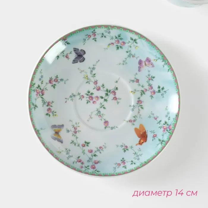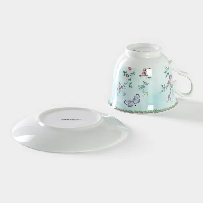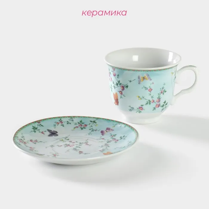 Чайная пара Доляна «Пелагея», чашка 220 мл, блюдце d=14 см, керамика, зелёная — Характеристики