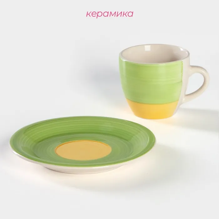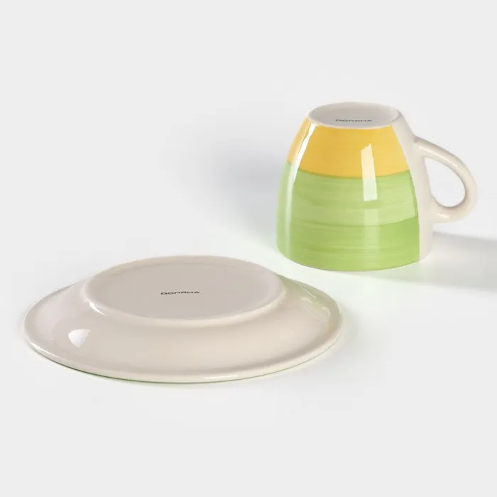 Чайная пара Доляна «Подсолнух», чашка 200 мл, блюдце d=14.5 см, зелёная — Характеристики