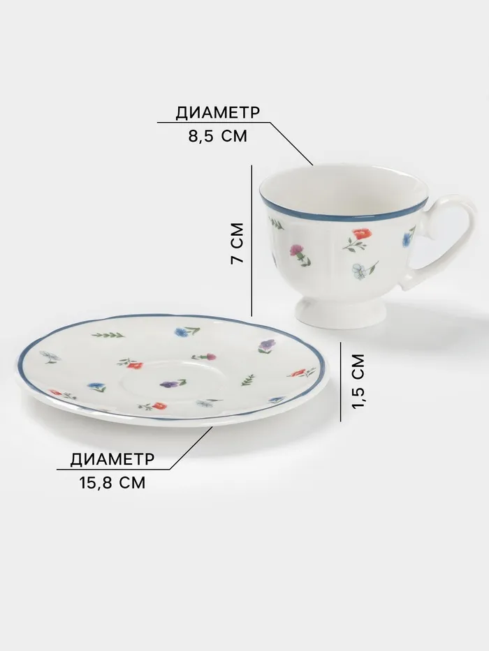 Чайная пара Доляна «Романс», 2 предмета: чашка 180 мл, блюдце 15.8×1.5 см, фарфор, белая — Характеристики