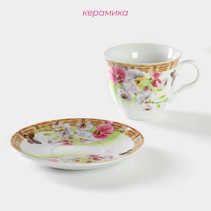 Чайная пара Доляна «Садовый дворик», чашка 200 мл, блюдце d=14,1 см, керамика, белая изготовлен с большим изяществом и вниманием к деталям. Выразительная пара будет делать чаепитие удобным и приятным день ото дня.