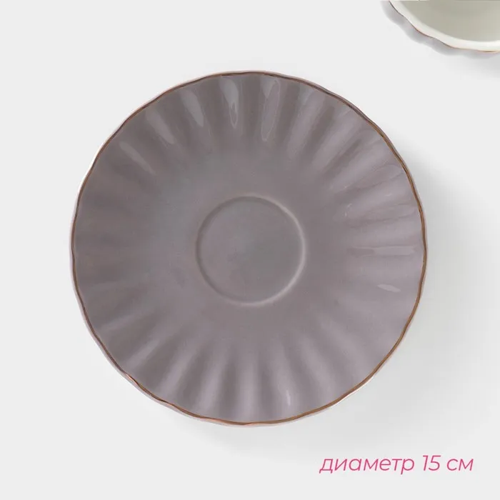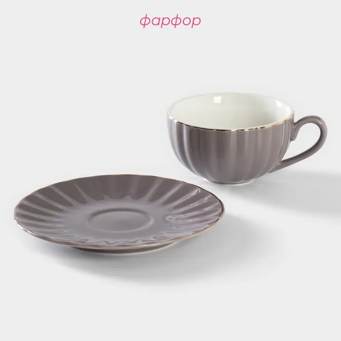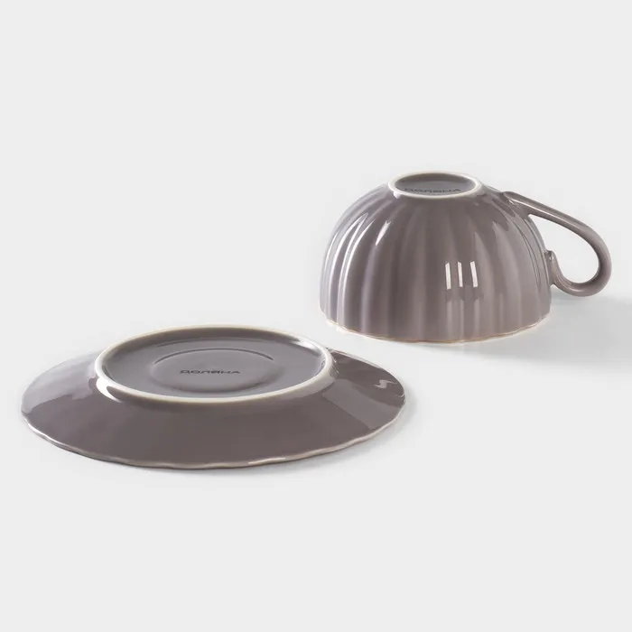 Чайная пара Доляна «Вивьен», 2 предмета: чашка 200 мл, блюдце d=15 см, фарфор, серая — Характеристики
