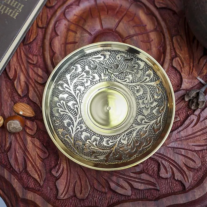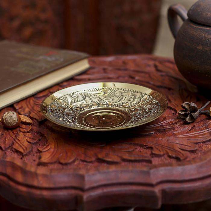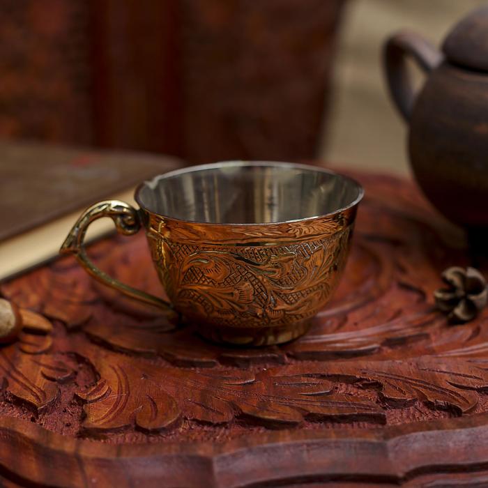 Элегантная декоративная чайная пара "Эго" латунь 6х13х13 см – чашка и блюдце, всегда будет напоминать вам о традиции чаепития и необыкновенной работе индийских мастеров.