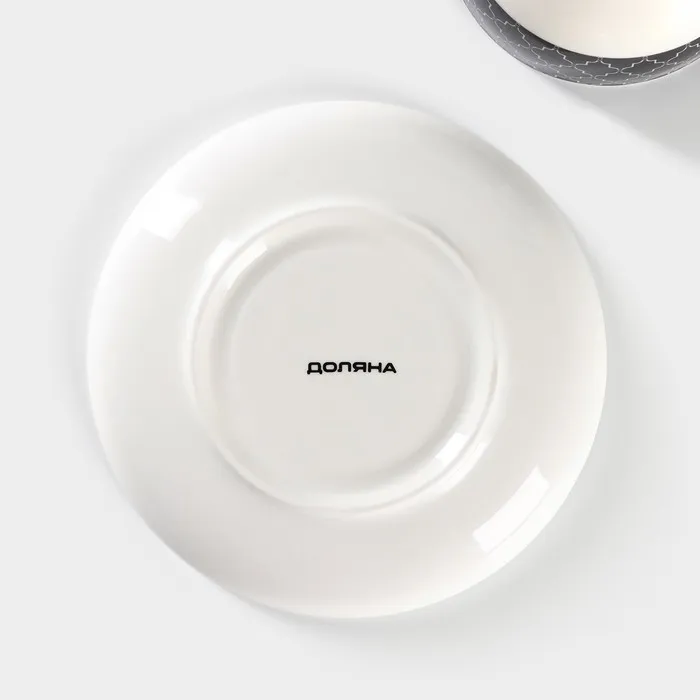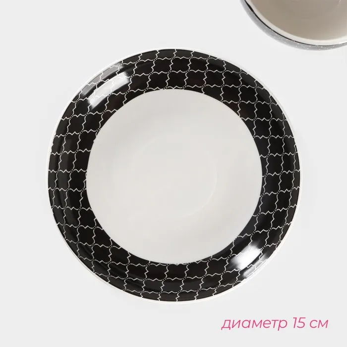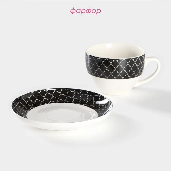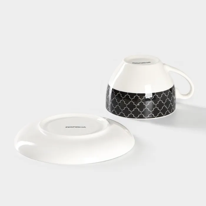 Чайная пара фарфоровая Доляна «Марокко», 2 предмета: чашка 280 мл, блюдце d=15 см, цвет белый и чёрный — Характеристики
