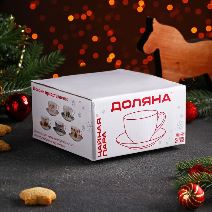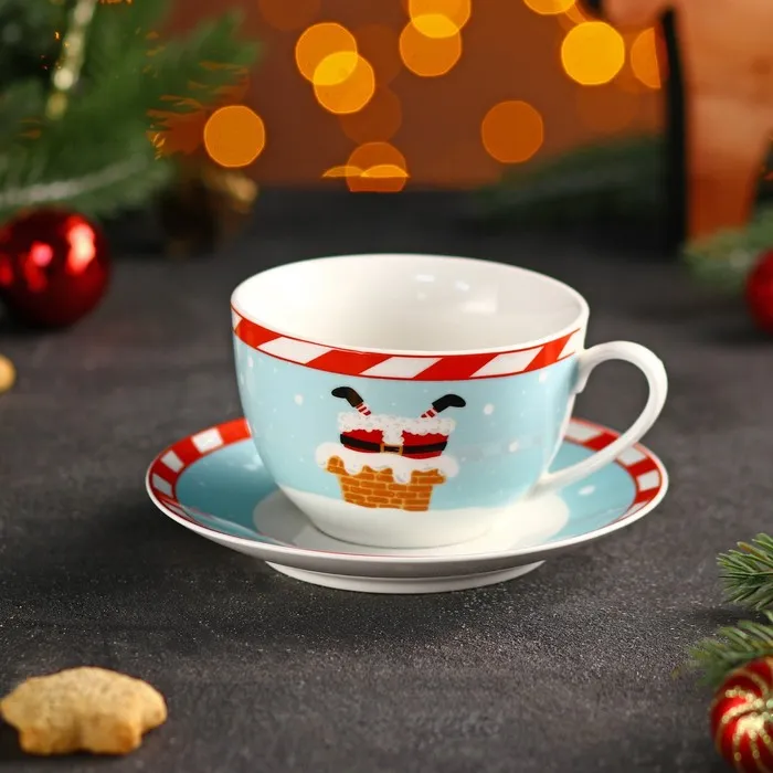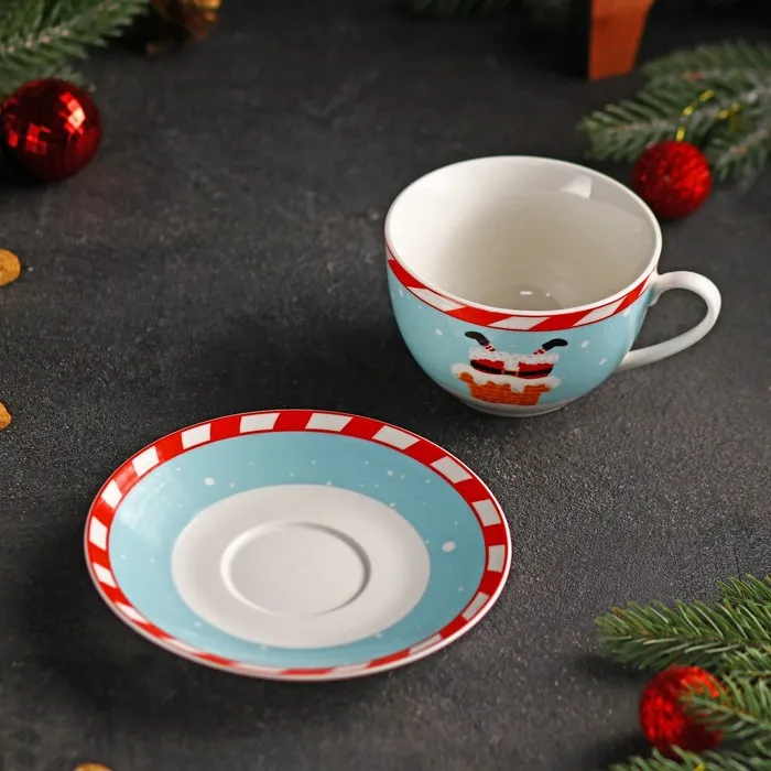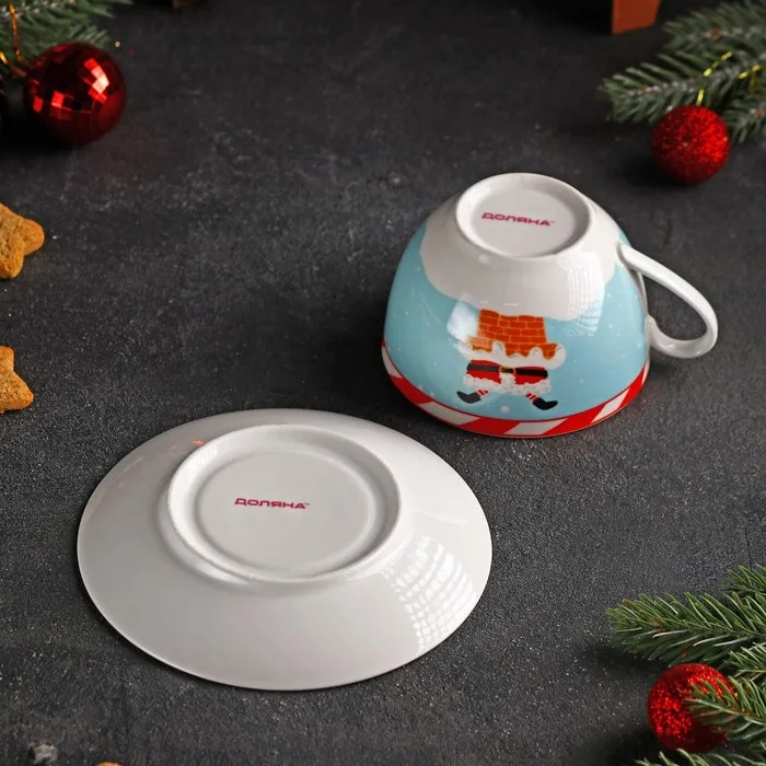 Чайная пара фарфоровая Доляна «Новый год. Дед Мороз», 2 предмета: чашка 250 мл, блюдце d=14 см — Характеристики