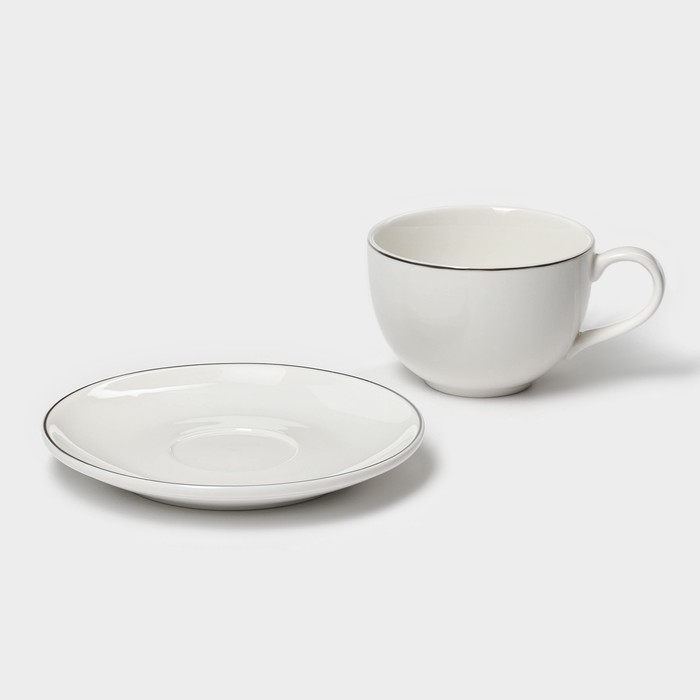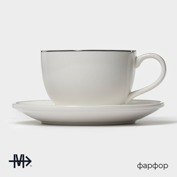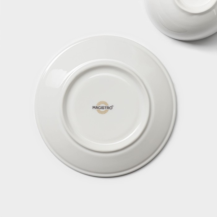 Чайная пара фарфоровая Magistro La Perle, 2 предмета: чашка 230 мл, блюдце d=15 см, цвет белый — Характеристики