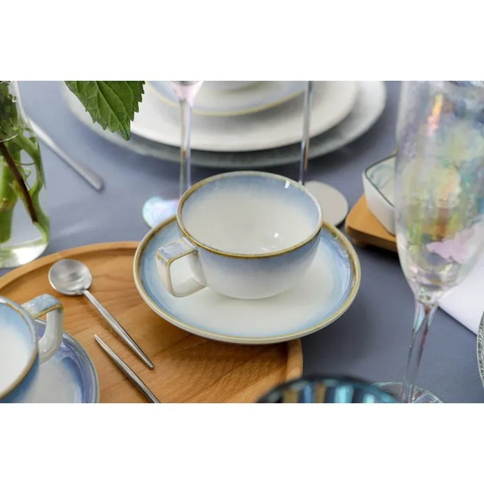 Нежная серия посуды «Пэвэти» от торговой марки Magistro влюбляет в себя с первого взгляда. Изделия выполнены в небесных оттенках с бежевой окантовкой, что придаёт им незабываемый и утончённый вид.