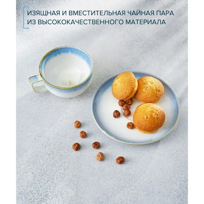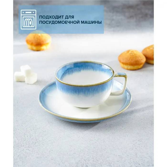 Чайная пара фарфоровая Magistro «Пэвэти», 2 предмета: чашка 220 мл, блюдце d=16,5 см, цвет голубой — Характеристики