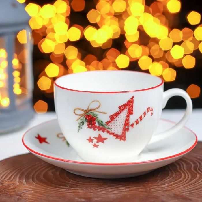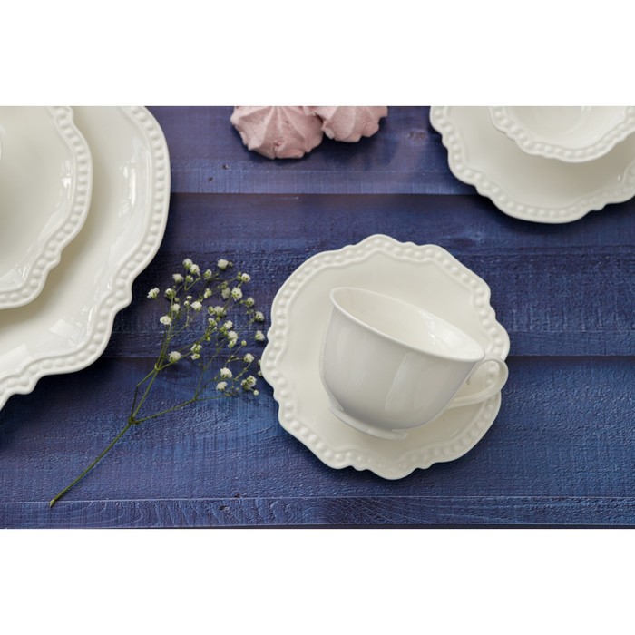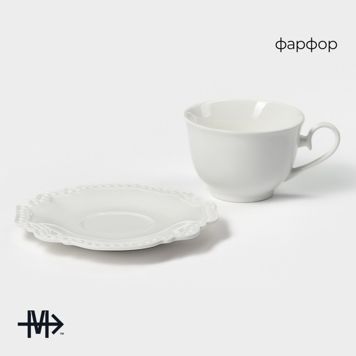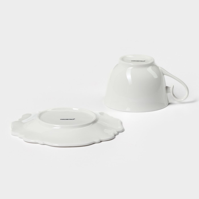 Чайная пара фарфоровая Magistro «Сюита», 2 предмета: кружка 250 мл, блюдце d=15.5 см, цвет белый — Характеристики
