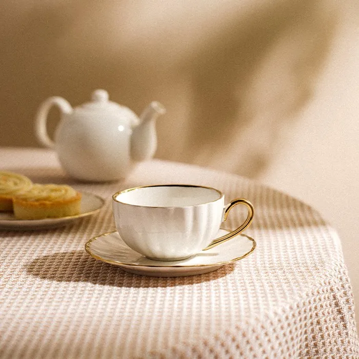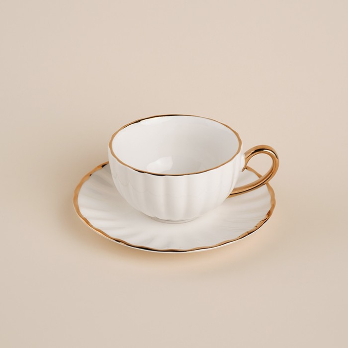 Создайте элегантную чайную традицию! Фарфоровая пара с золотой окантовкой — это гармоничный дуэт чашки и блюдца для ценителей утончённого чаепития. Набор сочетает классическую эстетику с тактильной выразительностью рельефного декора, превращая ежедневный ритуал в момент наслаждения.