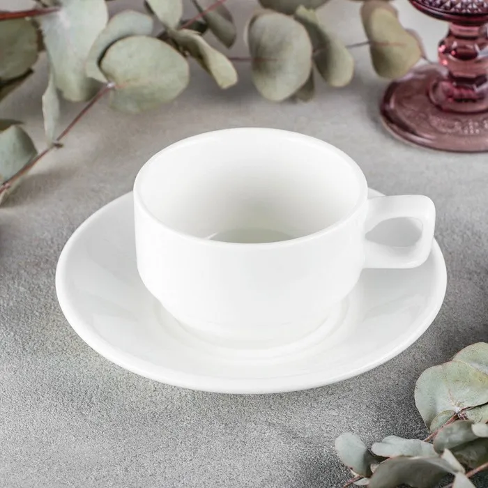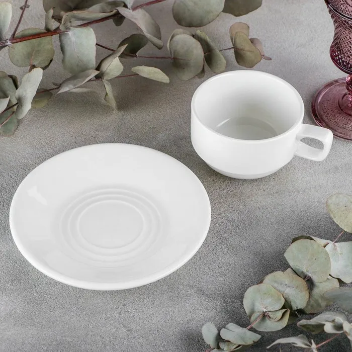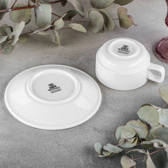 Чайная пара фарфоровая Wilmax Stella, 2 предмета: чашка 220 мл, блюдце d=15 см, цвет белый — Характеристики