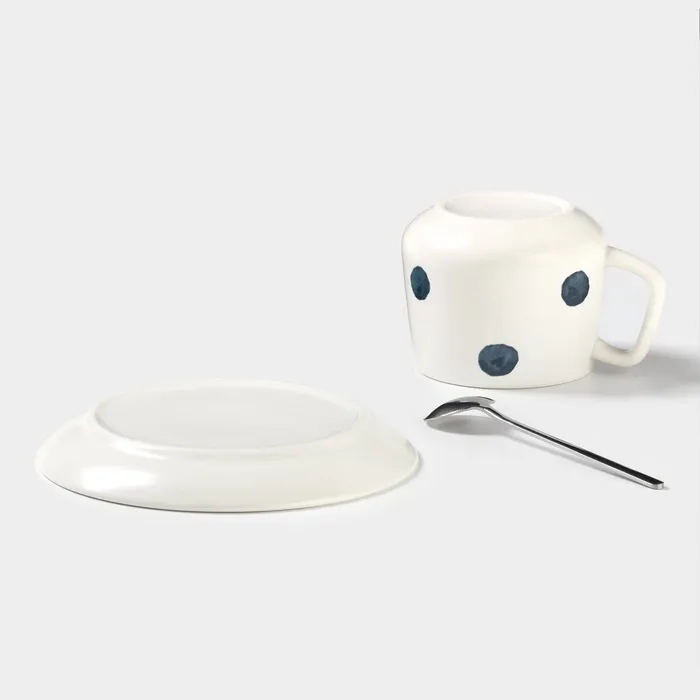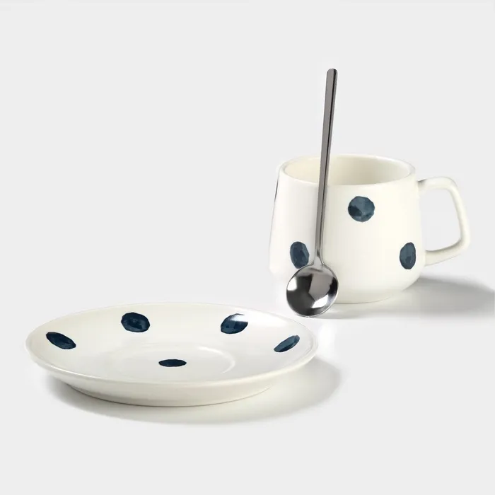 Чайная пара «Горошек», 220 мл, с ложкой, блюдце d=15, кружка 9.5×7.5×7 см, керамика, белая — Характеристики