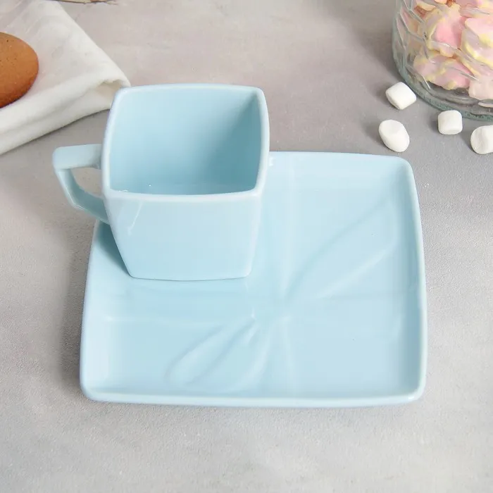 Чайная пара керамическая «Голубой подарок»: кружка 150 мл, блюдце 15.5×15.5 см — Характеристики
