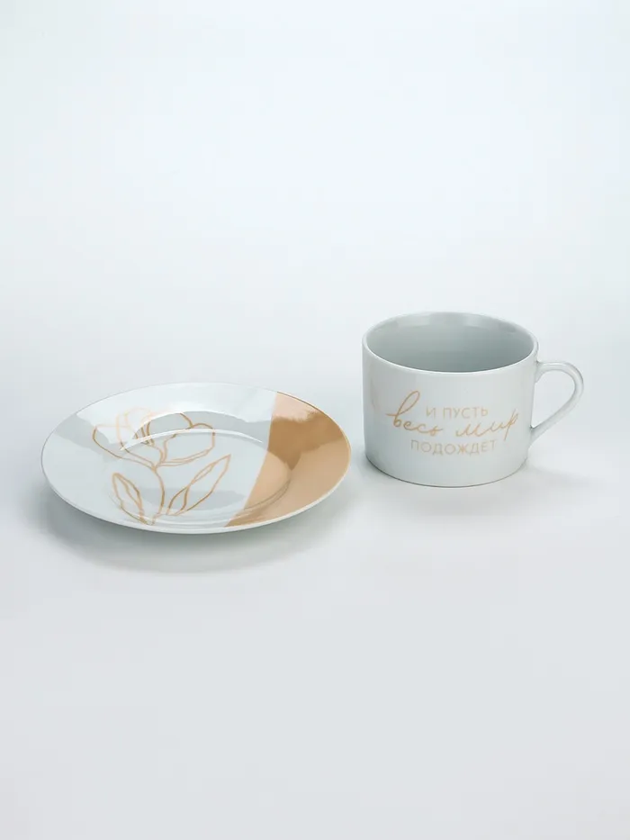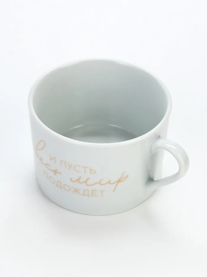 Чайная пара керамическая «И пусть весь мир подождет», 200 мл, белая — Характеристики
