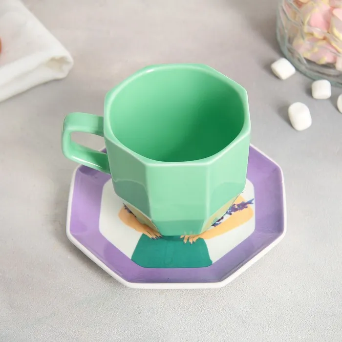 Чайная пара керамическая «Лаванда»: кружка 200 мл, блюдце 13 см — Характеристики
