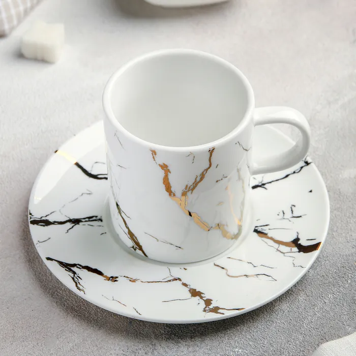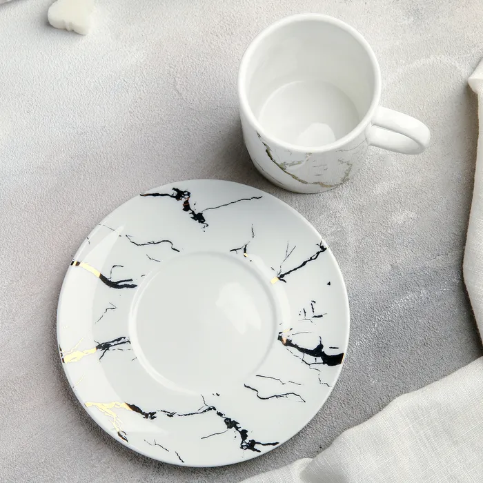 Чайная пара керамическая «Марбл», чашка 220 мл, блюдце d=15 см, цвет белый — Характеристики