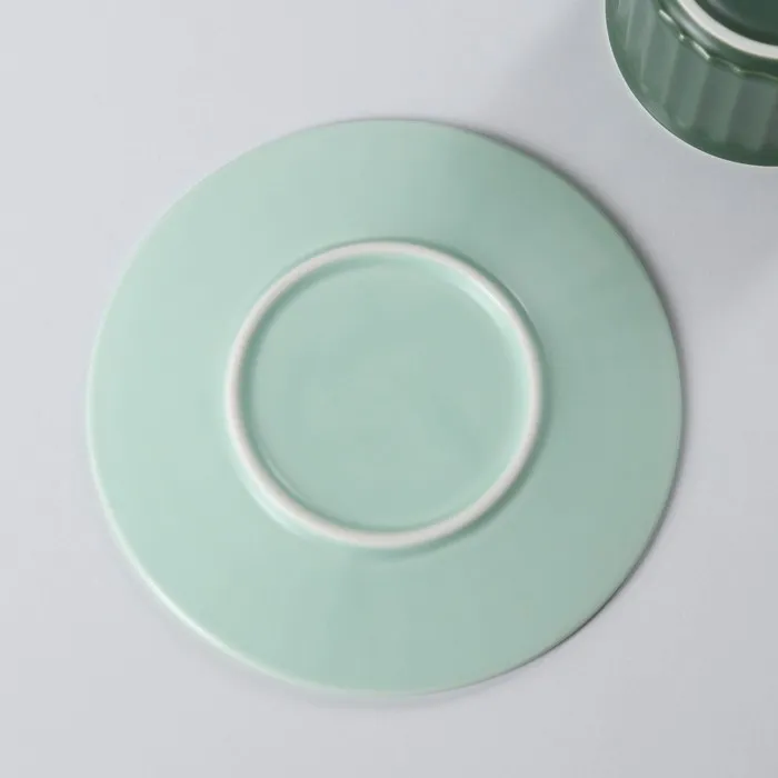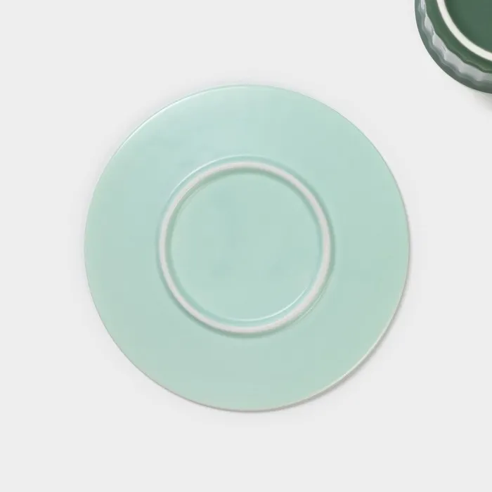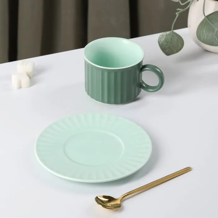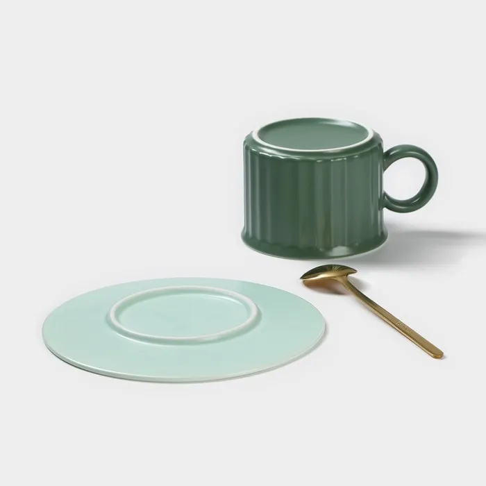 Чайная пара керамическая «Профитроль», 3 предмета: чашка 180 мл, блюдце d=13,7 см, ложка, цвет зелёный — Характеристики