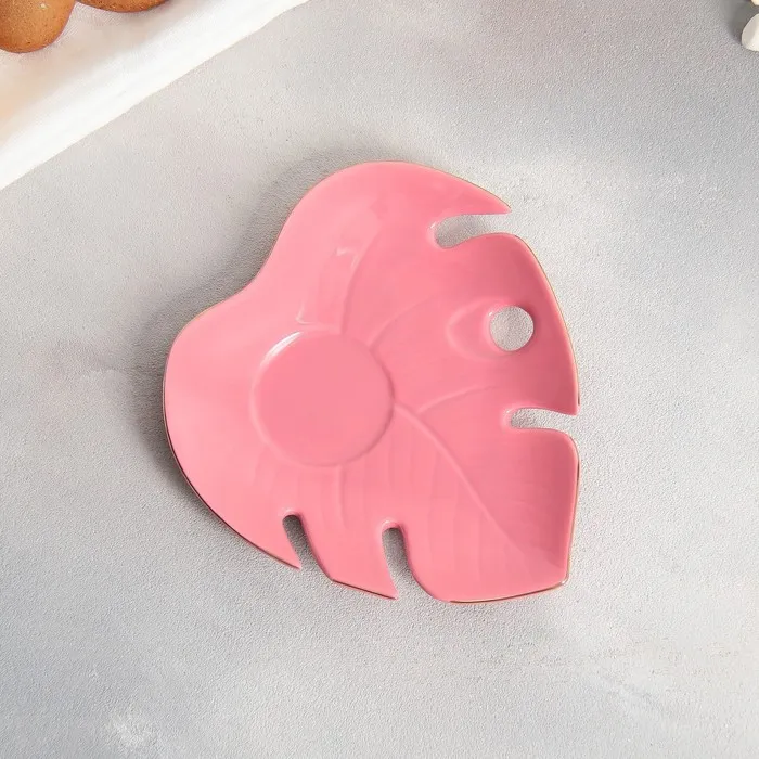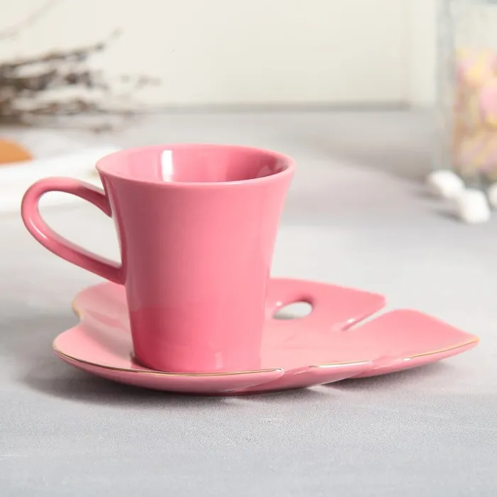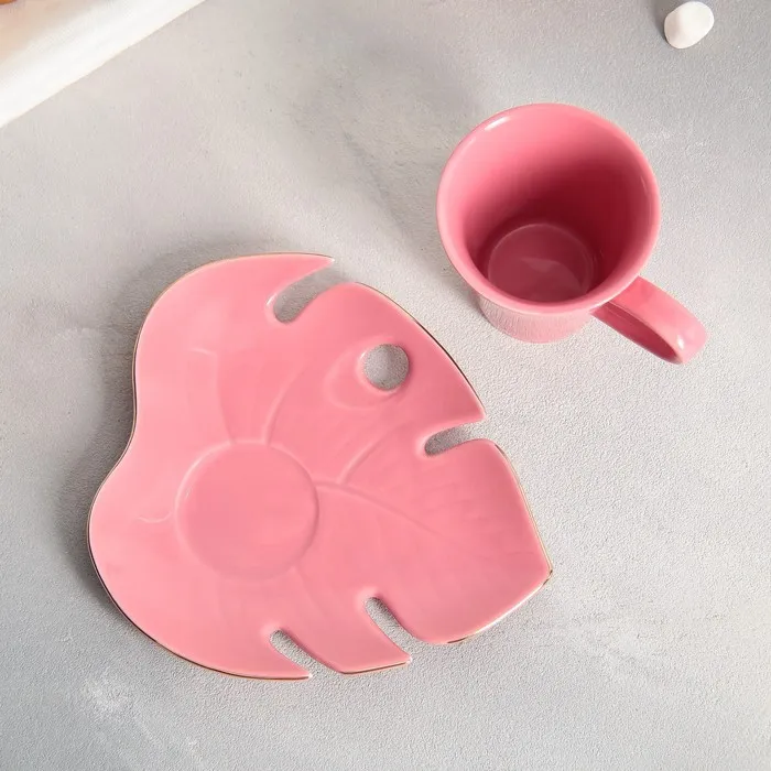 Чайная пара керамическая «Розовая монстера»: кружка 100 мл, блюдце 15×14 см — Характеристики