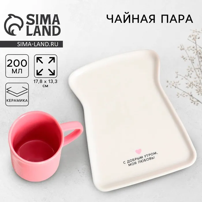 Чайная пара керамическая «С добрым утром»: кружка 200 мл, блюдце 17.8×13.3 см — Характеристики
